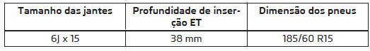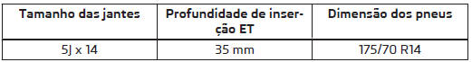 As correntes de neve só podem ser montadas nas rodas dianteiras e são aplicáveis apenas para as seguintes combinações de jantes/pneus.