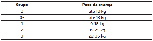 Classificação por grupos das cadeiras de criança de acordo com a norma ECE-R 44.