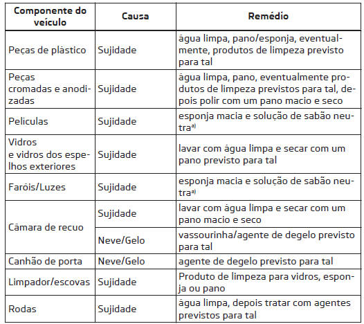 - Não limpar os faróis/as luzes a seco, não utilizar objetos afiados - existe o perigo de danificar o revestimento protetor e a formação de fissuras subsequente nos vidros do farol.