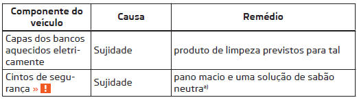 - Objetos cortantes em peças de vestuário (p. ex., fechos de correr, rebites, cintos com arestas vivas) podem danificar o material de revestimento no veículo. Um tal dano não pode ser reconhecido como uma reclamação justificada.