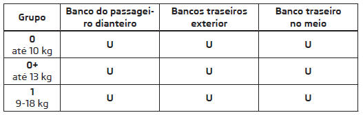 U Categoria de cadeiras de criança "Universal" - cadeira de criança que está munida com cinto de segurança para a fixação no banco.