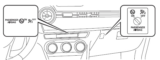 Os airbags dianteiro, lateral e o pré-tensor do cinto de segurança do passageiro dianteiro permanecerão desativados até o interruptor de desativação do airbag do passageiro dianteiro ser colocado na posição ON.